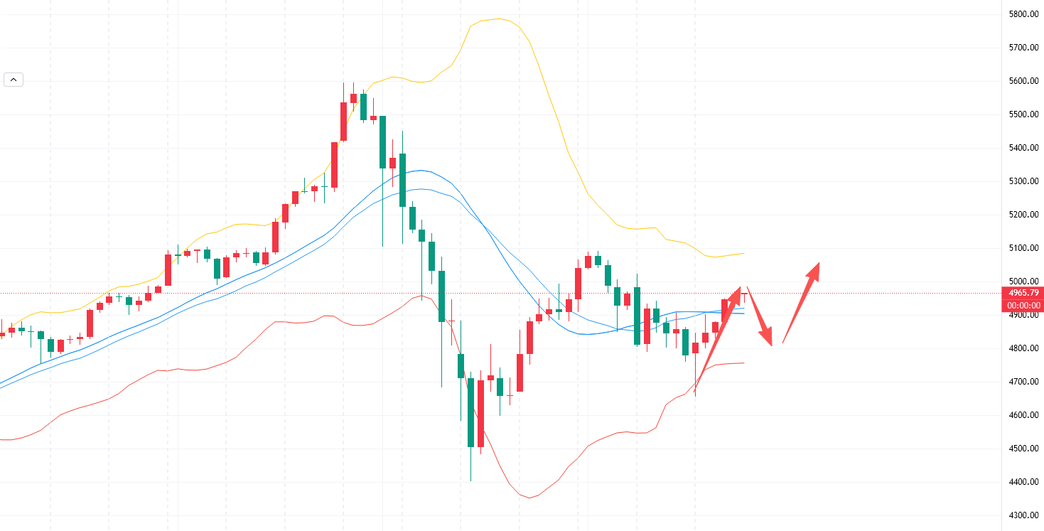 周一短期关注4850-30支撑轻仓跟进多,意外见4700还是多。上方目标先看4950-5000关口,突破后顺势上看。不充分回调不做多,耐心等待回落上车机会。