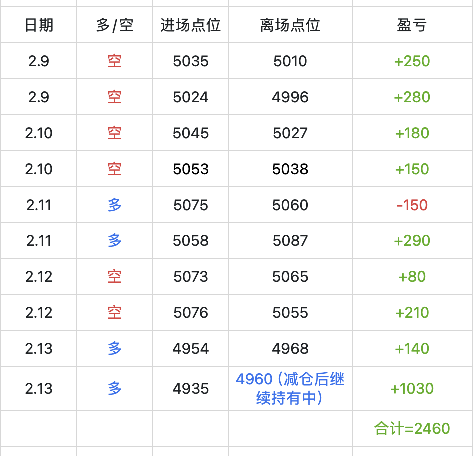 汇通网2月15日讯—— 李诗冉:2.15本周实盘10单止盈9单大赚约2460点。