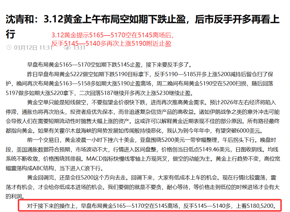 汇通网3月15日讯—— 沈青和:3.15本周黄金布局止损一单剩余全是利,下周行情走势分析操作策略解析