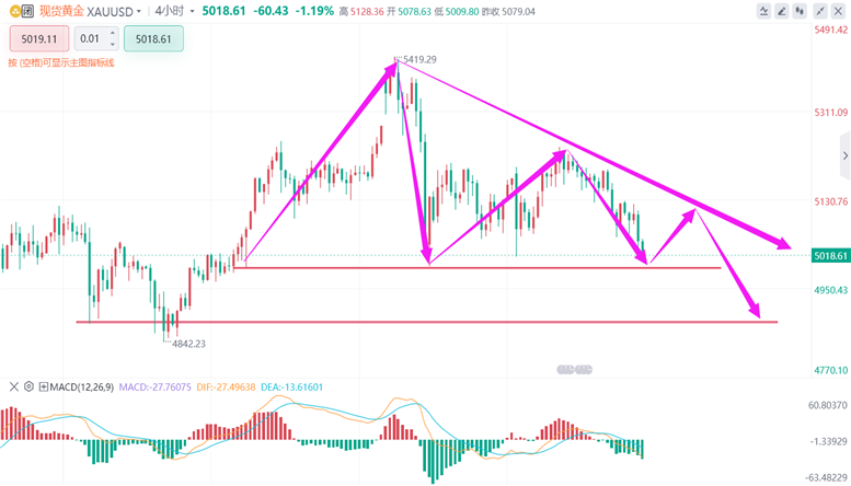 从趋势结构看,本轮调整属于多头趋势内的技术性回踩,即便短期支撑短暂失守、出现连续阴线,也不会扭转中期多头格局,仅会延长震荡整理周期。当前低点序列4402-4654-4841-4996-5009逐步抬升,5000关口为核心多空分水岭,周五下探未有效破位,买盘承接力度显现。