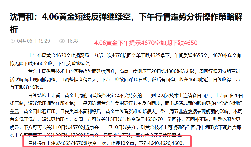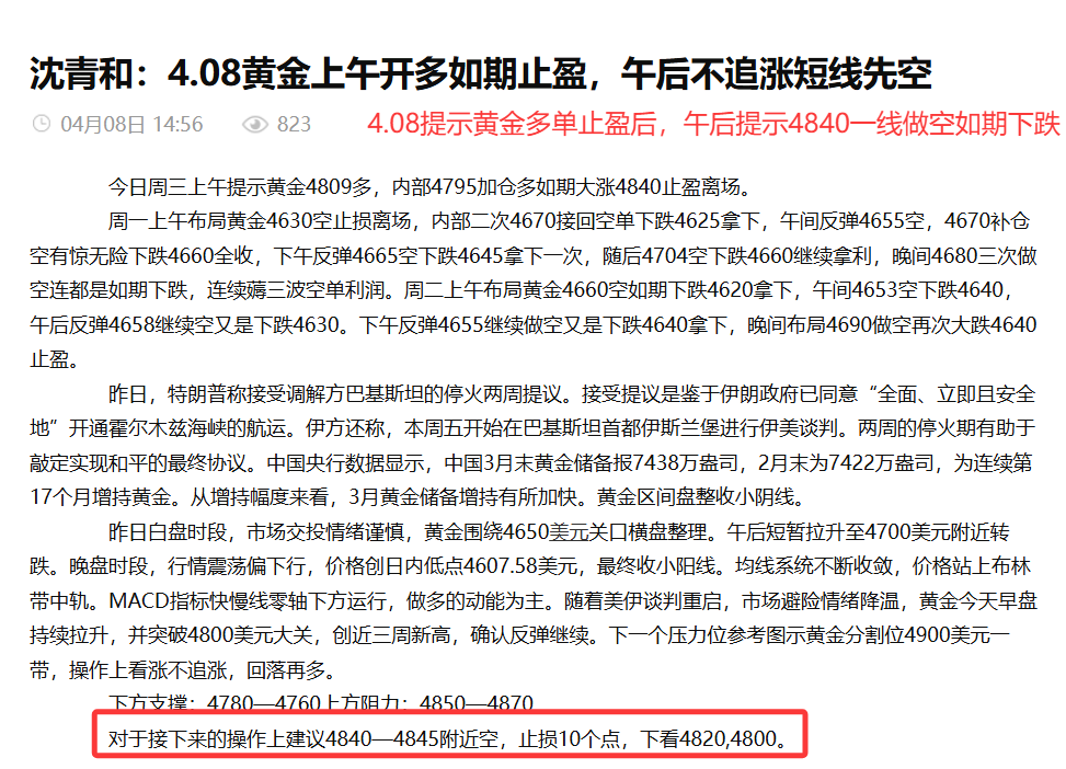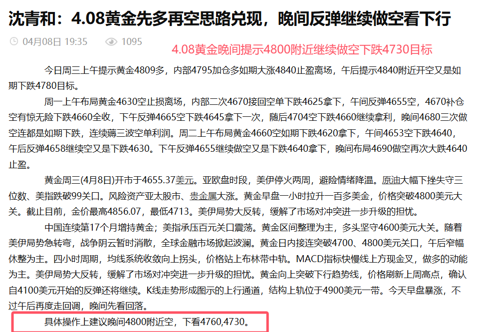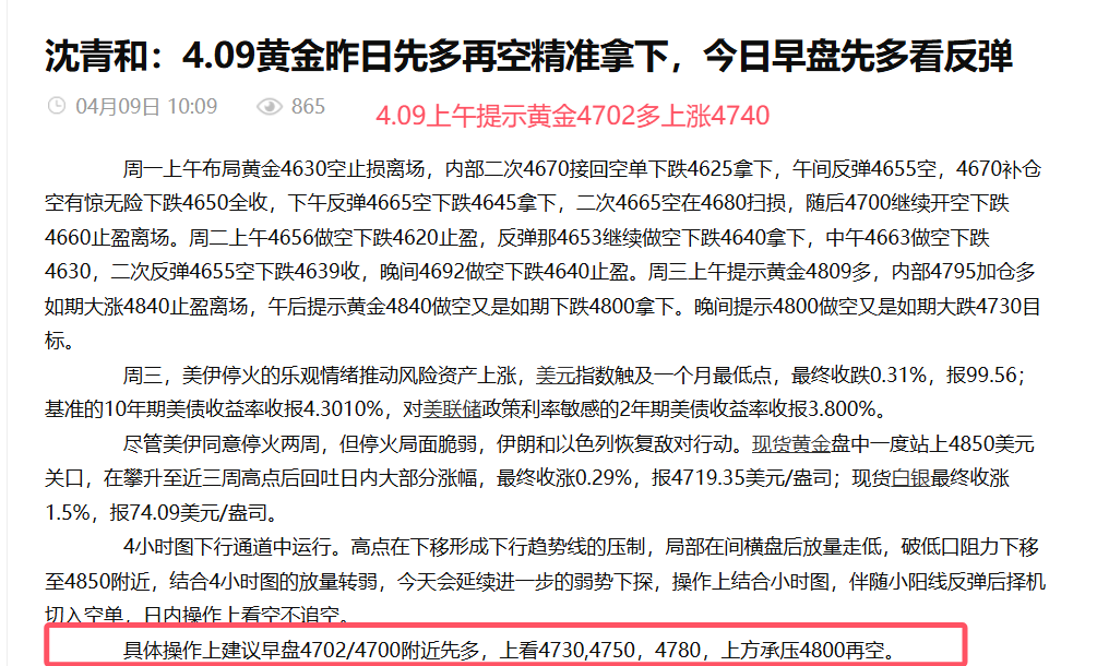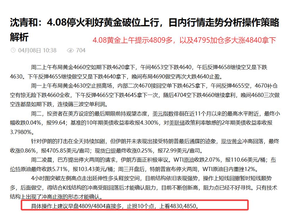 汇通网4月11日讯—— 沈青和:4.11本周黄金布局轻松拿利,全网公开策略精准布局拿利超四千点