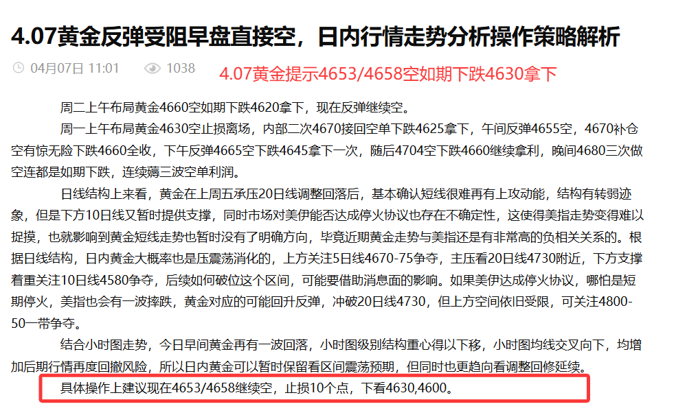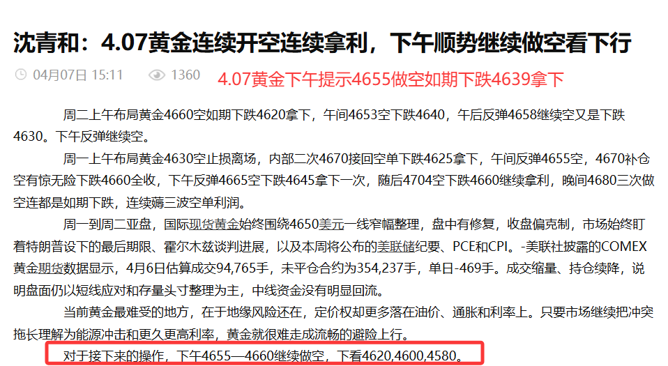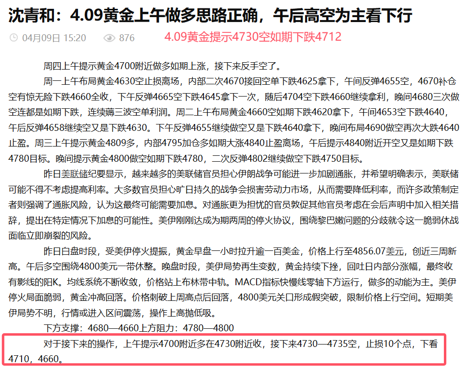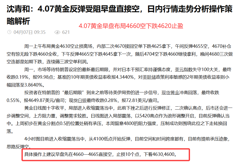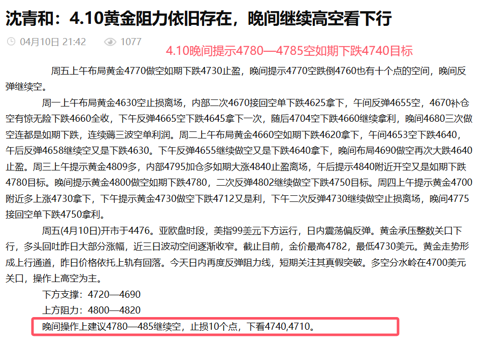 汇通网4月11日讯—— 沈青和:4.11本周黄金布局轻松拿利,全网公开策略精准布局拿利超四千点