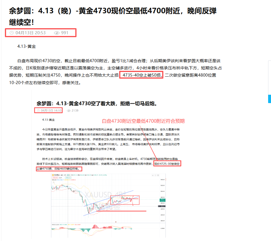 汇通网4月13日讯—— 余梦圆:4.13-美盘4735-40空再次短线获利。