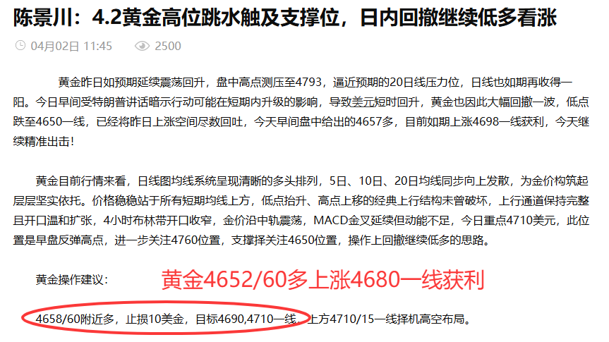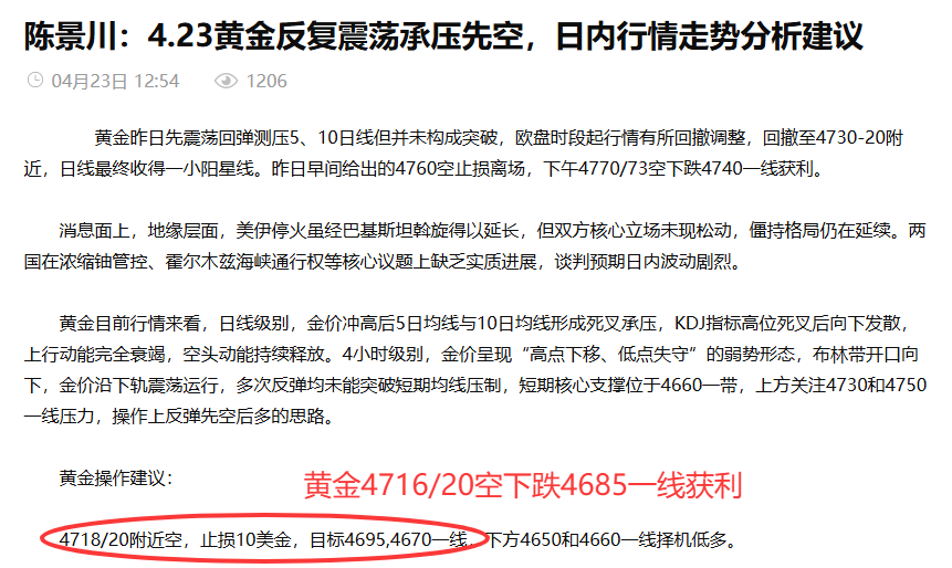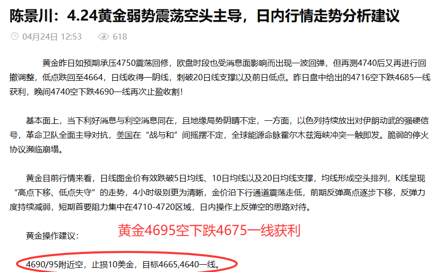 汇通网4月26日讯—— 陈景川:4.26周评黄金本周拿下1460点利润,下周行情走势分析建议